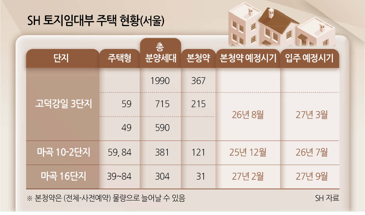 7일 서울주택도시개발공사(SH)에 따르면 다음달 강서구 마곡 10-2단지는 59·84㎡ 121호에 대한 본청약을 진행할 예정이다. 입주 예정시기는 2026년 7월로 자세한 토지 임대료는 본청약 때 공개된다. 사전예약 부적격 및 포기 물량은 본청약 물량으로 전환돼 모집세대 수가 증가할 수 있다.