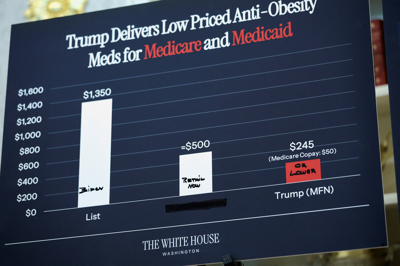 트럼프 대통령은 “일라이 일리와 노보 노디스크는 비만 치료약을 ‘최혜국 국가’ 기준으로 미국 환자에게 제공하기로 했다”며 “위고비 가격은 월 1350달러(약 188만원)에서 250달러(약 35만원)로, 젭바운드는 월 1080달러(약 150만원)에서 346달러(약 50만원)로 내려갈 것”이라고 밝혔다.