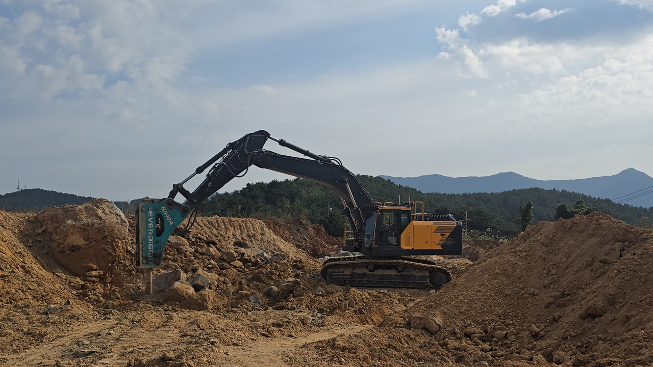 | 지난 4일 전라남도 여수에서 사람이 타지 않은 무인 굴착기가 원격조종에 따라 작업을 진행 중이다. 홍승희 기자 |