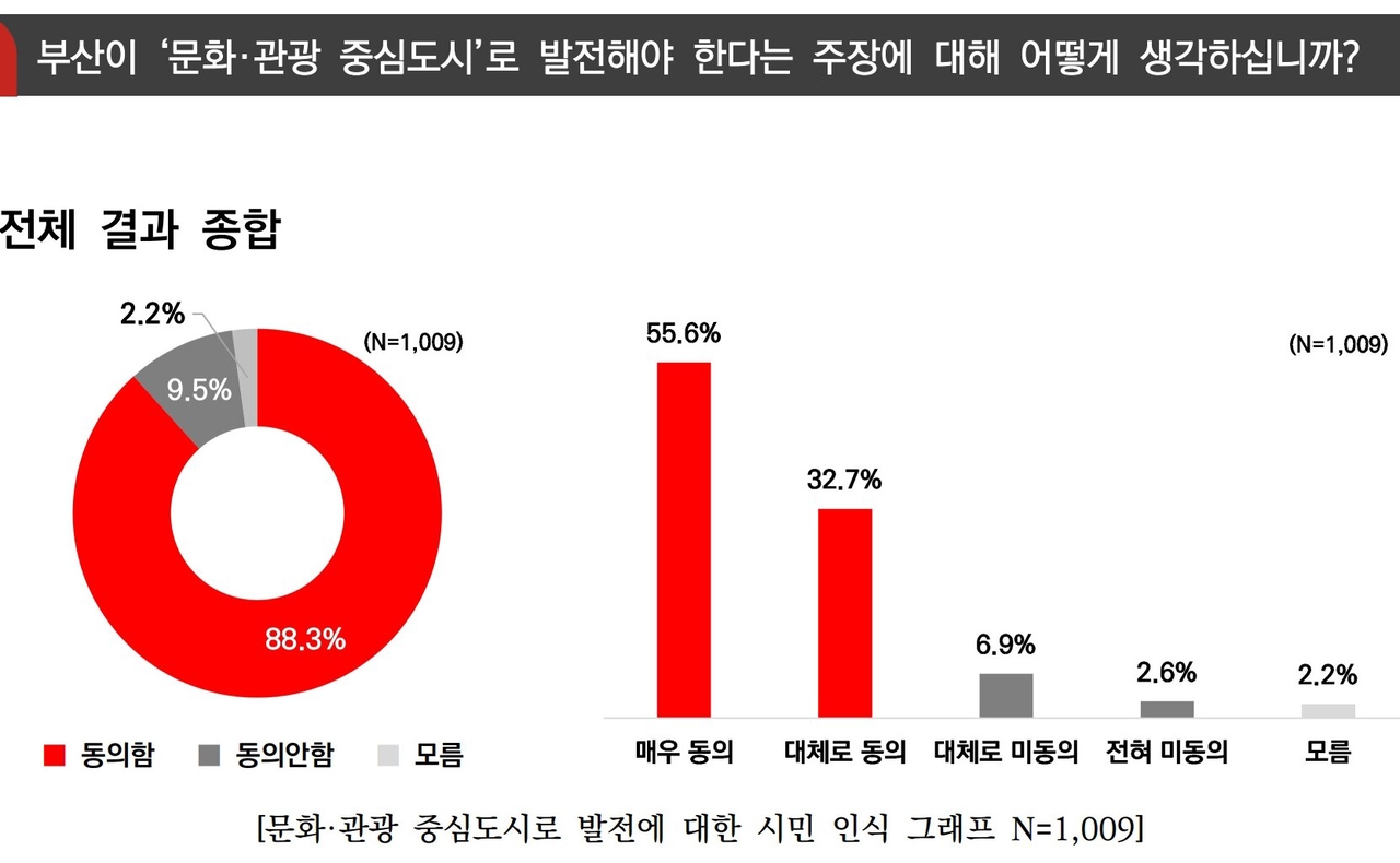 이러한 조사 결과를 바탕으로 정 의원은 10일 오전 10시 부산 광안신협 신사옥 6층에서 ‘가자! 문화관광수도 부산’ 정책토론회를 연다. 박형준 부산시장이 토론자로 참석하고, 청년 창작자, 지역 상인, 예술인, 관광업 종사자 등 시민 10여 명이 참여해 현장의 문제와 정책 전환 방향을 직접 논의한다. 설문조사 오차범위는 ±3.1%p.