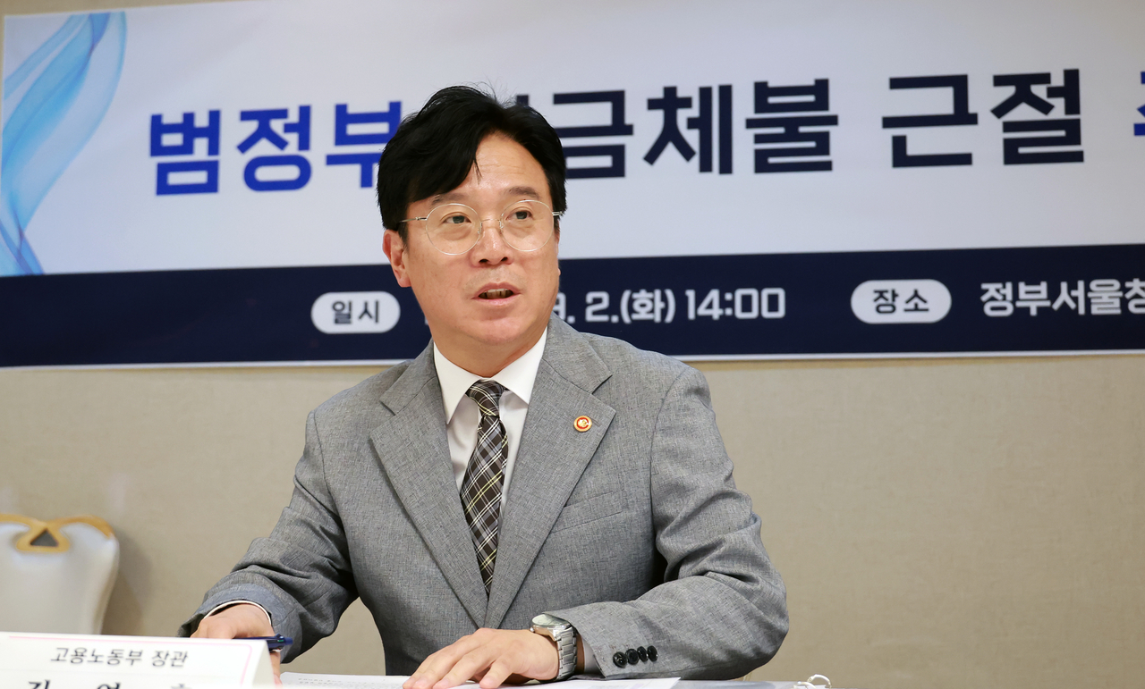 | 김영훈 고용노동부 장관이 2일 정부서울청사에서 범정부 임금체불 근절 추진 TF 회의를 열고 발언하고 있다. [고용노동부 제공] |