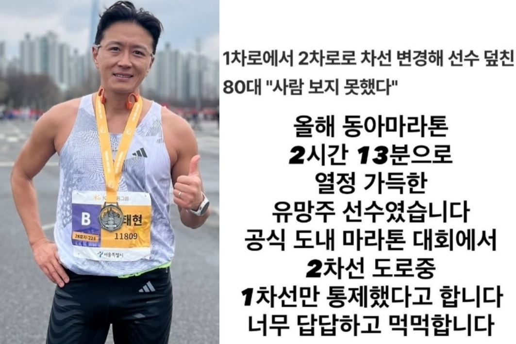 마라톤에 대한 남다른 열정으로 해설위원으로도 데뷔한 진태현은 이날 자신의 SNS에 A씨의 사고 기사를 공유하며 “올해 동아마라톤 기록 2시간 13분, 열정 가득한 유망주 선수였다”며 “공식 도내 마라톤 대회에서 2차선 도로 중 1차선만 통제했다고 한다. 너무 답답하고 먹먹하다”고 심경을 밝혔다.