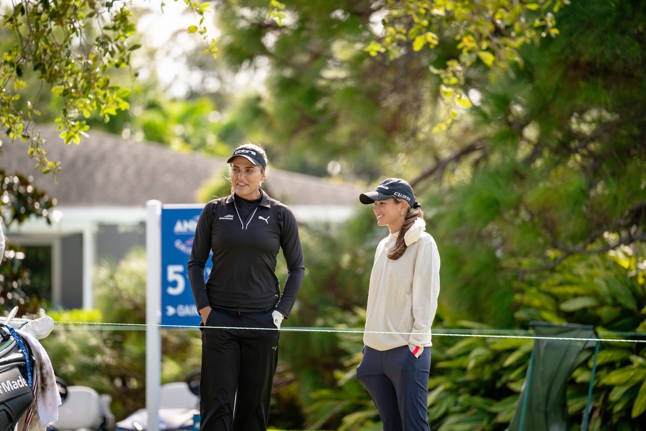 | 렉시 톰슨과 연습 라운드 중인 카이 트럼프(오른쪽). [사진=LPGA |