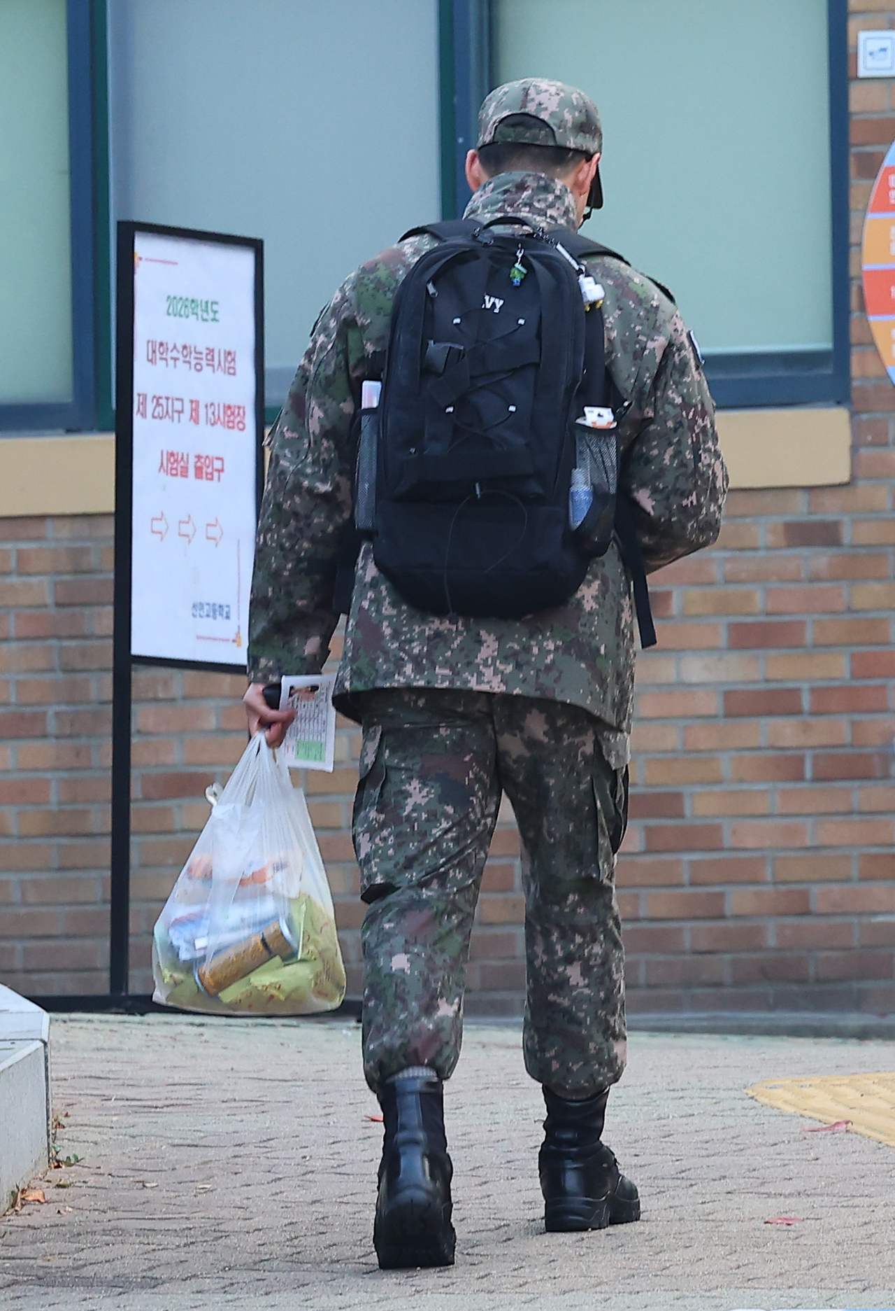 | 2026학년도 대학수학능력시험(수능)이 실시된 13일 오전 한 군인 수험생이 시험장으로 향하고 있다. <연합뉴스> |