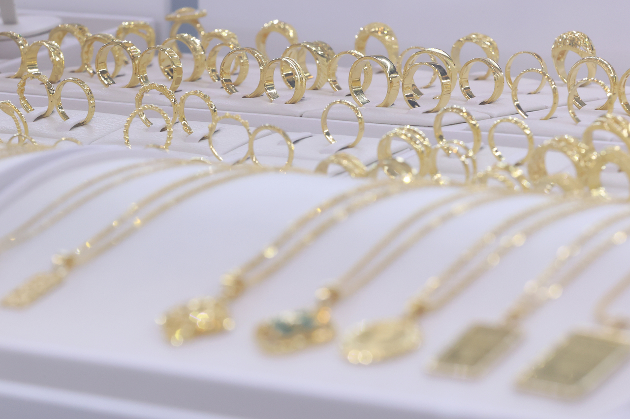 | 서울 종로구 한국금거래소에 진열된 금 제품 모습. [연합] |