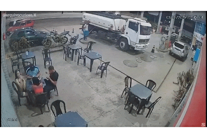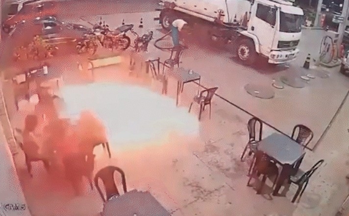 최근 영국 매체 더선에 따르면 지난 3일 브라질 북동부 마라냥주 티몬시의 한 주유소에서 야외 카페 구역에 앉아 있던 남성이 담배를 피우던 중 성냥을 떨어뜨려 폭발 사고가 발생했다.