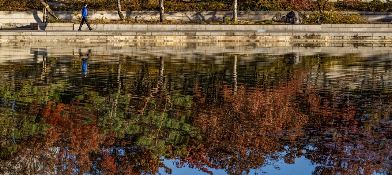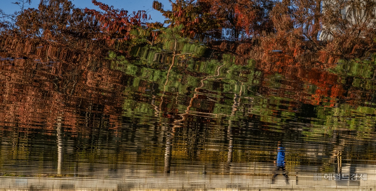 | 완연한 늦가을 날씨가 연일 이어지며 전국적으로 단풍이 절정에 달하고 있다. 14일 오전 서울 용산구 국립중앙박물관 내 울긋불긋 물든 단풍이 연못에 반영되어 보이고 있다. 임세준 기자 |