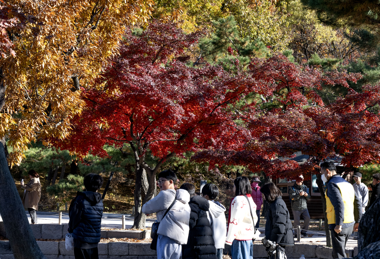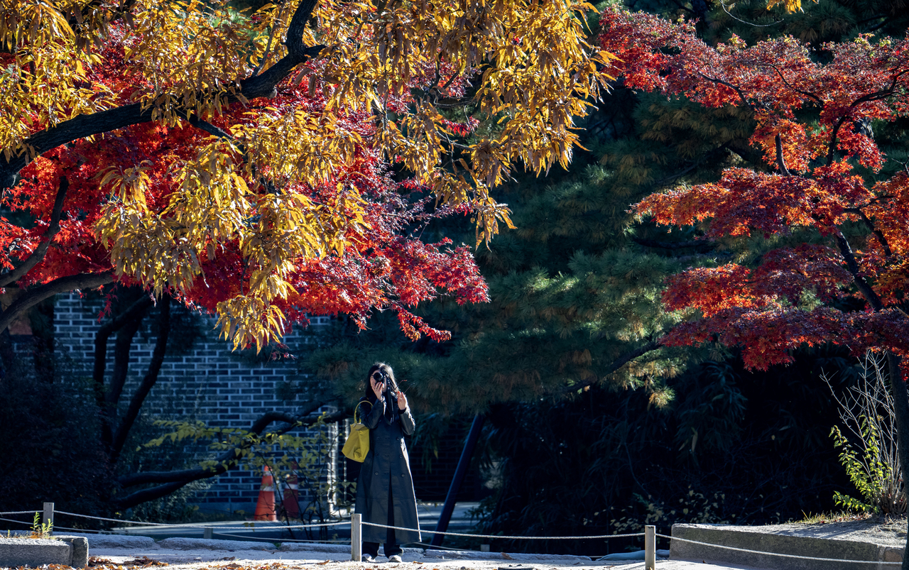 [헤럴드경제=임세준 기자] 완연한 늦가을 날씨가 연일 이어지며 전국적으로 단풍이 절정에 달하고 있다. 14일 오전 서울 도심 내 관광지에 울긋불긋 물든 단풍이 붉게 물들어 있다.