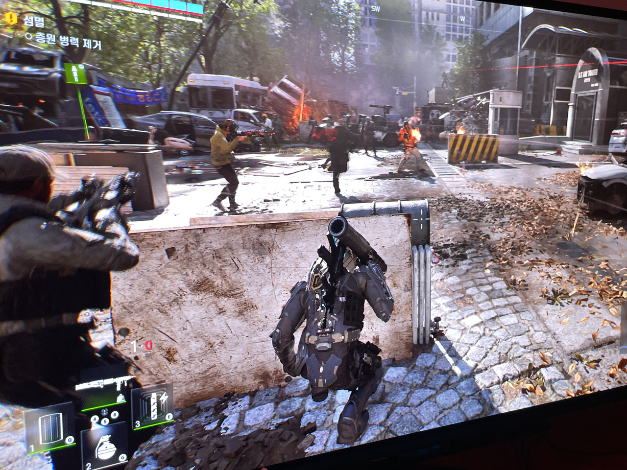 | 엔씨소프트 신작 ‘신더시티’ 플레이 모습. AI NPC와 슈팅 전투를 벌이고 있다. [차민주 기자/chami@] |