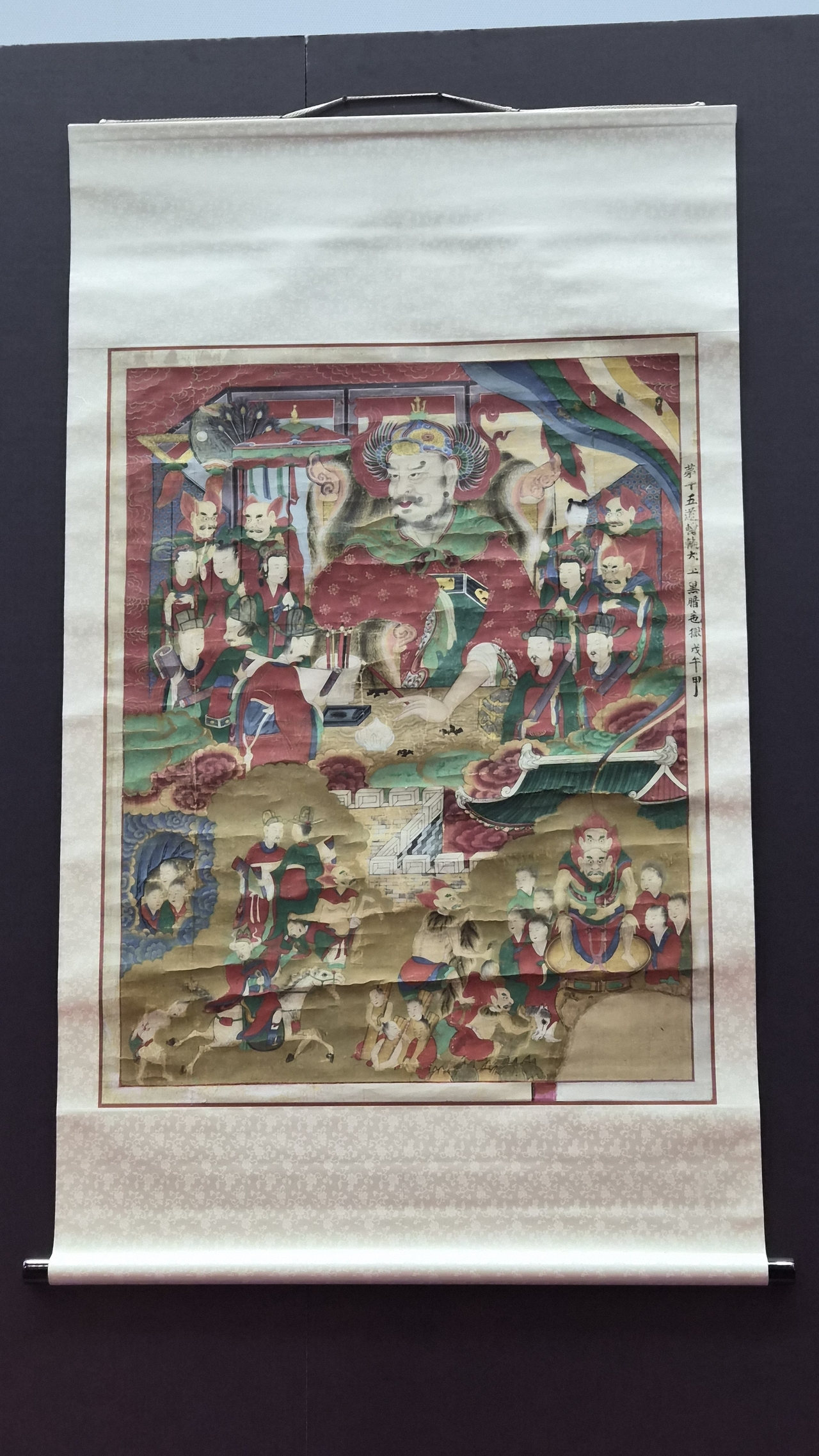 ‘시왕도’는 사람이 죽은 뒤 저승에서 심판을 주관한다는 열 명의 대왕을 그린 불화로, 불교의 사후세계관을 시각적으로 표현한 대표적 작품이다. 이번에 돌아온 신흥사 시왕도는 1798년(정조 22년)에 조성된 ‘제10오도전륜대왕도’로, 가로 91.4cm, 세로 116.8cm 크기다. 신흥사 명부전에 걸려 있던 불화로, 예술적 가치뿐만 아니라 종교적·역사적 중요성도 높다.