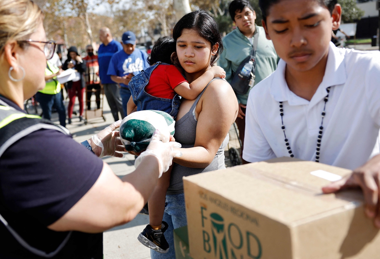| 지난 11일(현지시간) 미국 캘리포니아주 로스앤젤레스에서 시민들이 저소득층 식비 지원 프로그램(SNAP)으로 제공되는 지원 물품을 받고 있다. [AFP] |