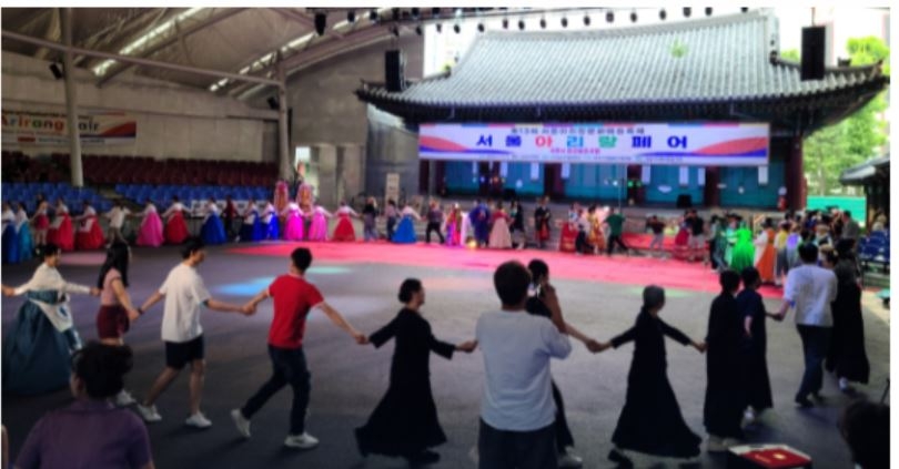 | 2023년 서울놀이마당에서 꾸며진 외국인과 함께 아리랑 술래 공연. |