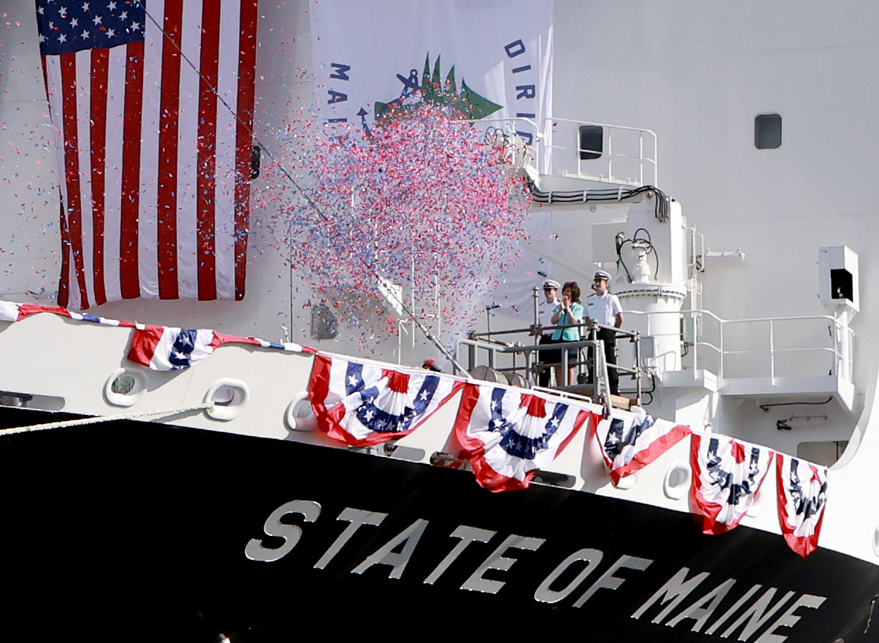 | 지난 8월 26일(현지시간) 미국 필라델피아 한화 필리조선소에서 열린 ‘스테이트 오브 메인’호 명명식. [연합] |