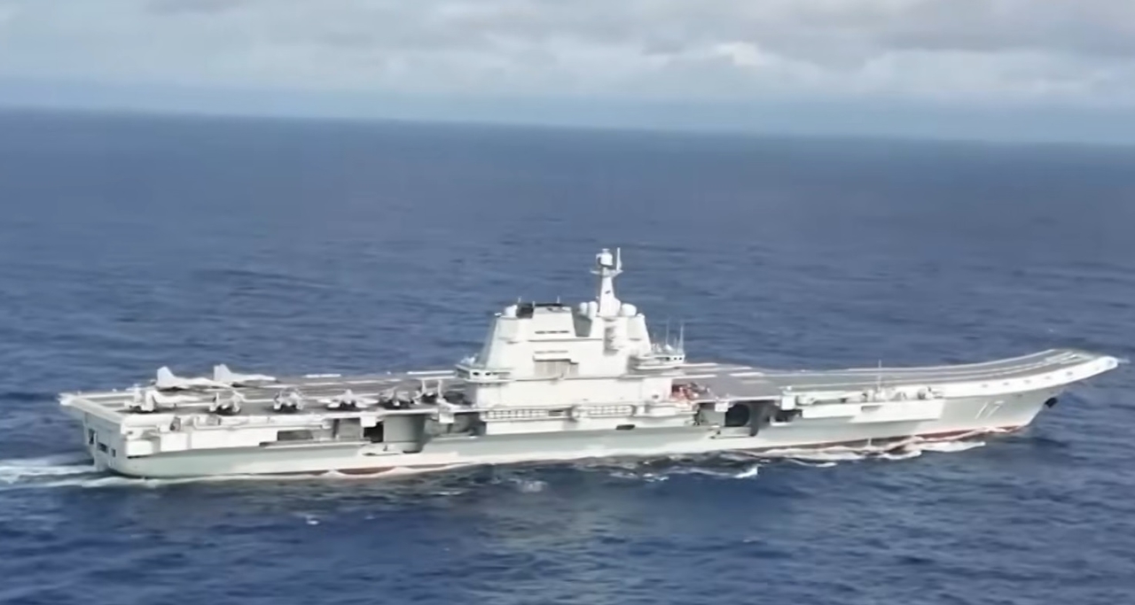 | 중국이 최근 진수한 세번째 항공모함인 푸젠함의 모습.[CCTV 영상 캡처] |