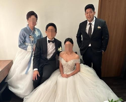 | 미 이민당국에 구금된 김태흥씨(맨 오른쪽)가 동생의 결혼식에 참석해 찍은 사진. [연합] |