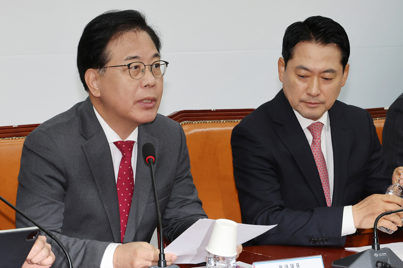 | 송언석 국민의힘 원내대표가 17일 국회에서 열린 최고위원회의에서 발언하고 있다. [연합] |
