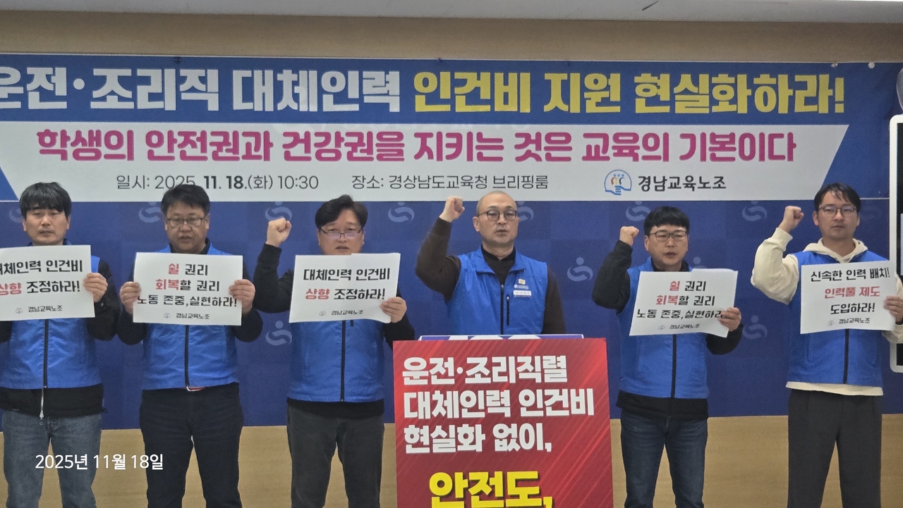 진영민 경남교육노조위원장은 “학생의 안전과 급식의 질을 지키는 일은 예산 논리로 미뤄둘 수 없는 문제”라며 “교육청이 책임 있는 대책을 즉시 마련해야 한다”고 주장했다.