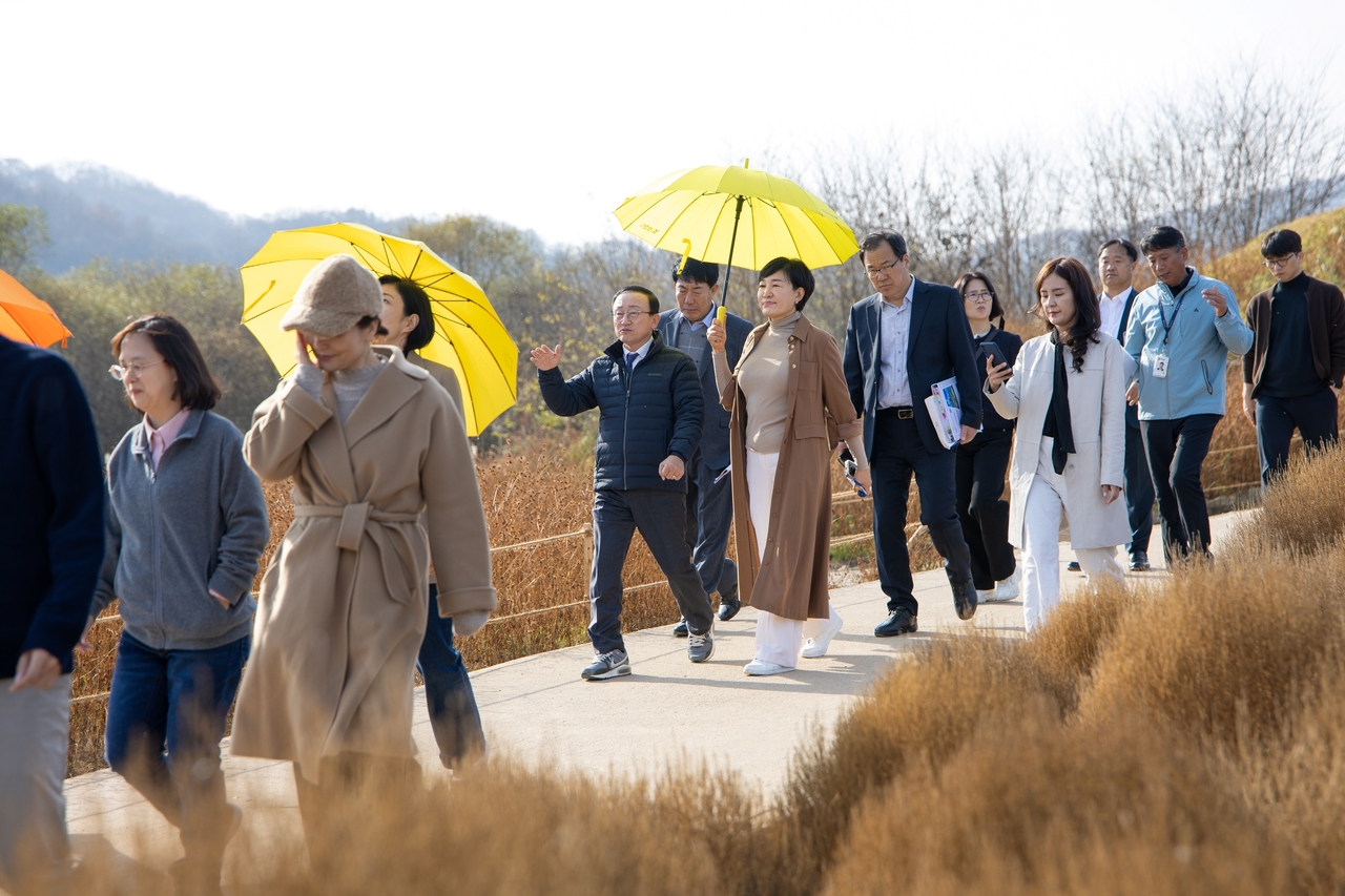 이날 현장에는 김덕현 군수와 류호국 부군수, 그리고 관계 공무원들이 함께해 조성 경과를 살펴보고 관리·운영 계획 등을 중심으로 사업 전반을 점검했으며, 향후 발전 방향과 접경지역의 관광 활성화 방안을 논의했다.