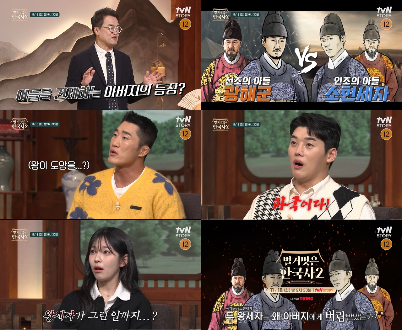 18일 밤 9시 30분에 방송되는 tvN STORY 역사 예능 ‘벌거벗은 한국사2’ 11회에서는 임진왜란의 혼란 속 백성들을 지켜낸 ‘조선의 희망’ 광해군과 병자호란에서 남다른 책임감으로 조선을 지킨 ‘왕세자의 정석’ 소현세자의 이야기를 파헤친다.