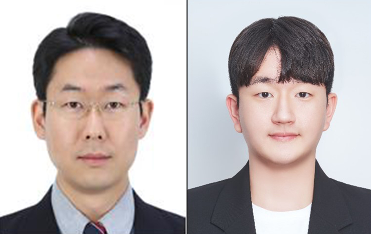 | 국립한국해양대와 국립부경대의 공동연구가 ‘나노스케일’ 표지논문으로 선정됐다고 18일 밝혔다. 사진은 왼쪽부터 한국해양대학교 전영태 교수, 윤진석 석사과정생 [국립한국해양대 제공] |