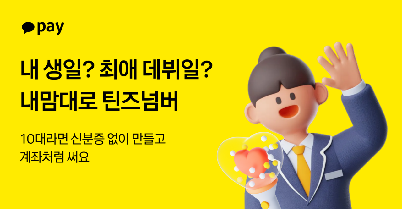 [헤럴드경제=정호원 기자] 카카오페이는 10대 전용 금융 서비스 틴즈넘버에서 뒷자리 4자리를 원하는 숫자로 설정할 수 있는 ‘내맘대로 틴즈넘버’ 프로모션을 진행한다고 18일 밝혔다.