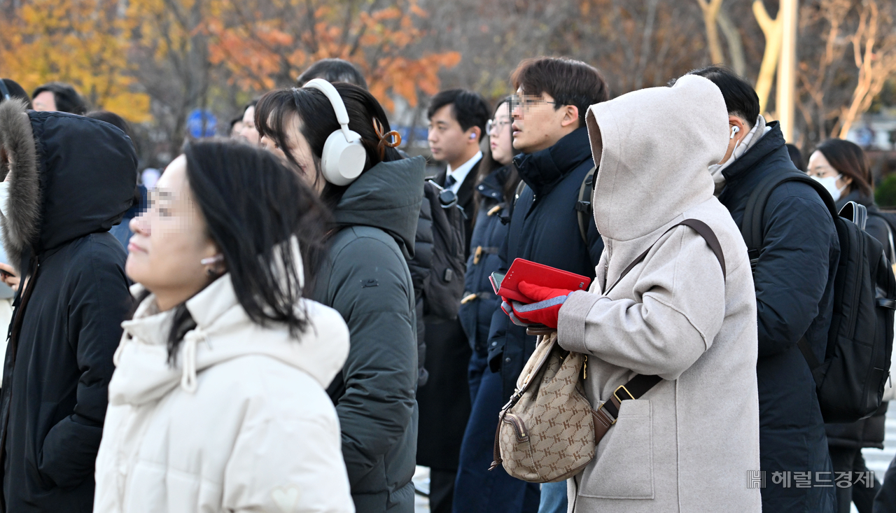 [헤럴드pic] 두터워진 옷차림 글꼴 선택 본문 텍스트 크게본문 텍스트 작게 인쇄 [헤럴드경제=임세준 기자] 서울 아침 기온이 영하권으로 내려간 18일 오전 서울 종로구 세종대로 사거리에서 시민들이 두터운 옷차림으로 거리를 지나고 있다. 기상청에 따르면 이날 일부 강원도와 충북, 경상권에 한파특보가 발효됐으며, 아침 기온이 전날보다 5~10도 가량 큰 폭으로 떨어져 전국 대부분 지역이 영하권에 들었다.