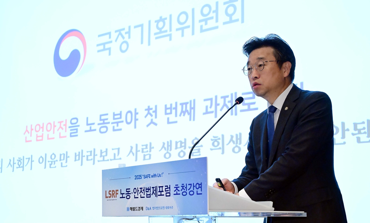 | 이용우 더불어민주당 의원이 19일 오전 서울 중구 더 플라자 호텔 서울에서 열린 헤럴드경제와 법무법인 대륙아주가 공동주최하는 중대재해예방 산업안전법제포럼 11월 초청강연에서 강연을 하고 있다. 이상섭 기자 |