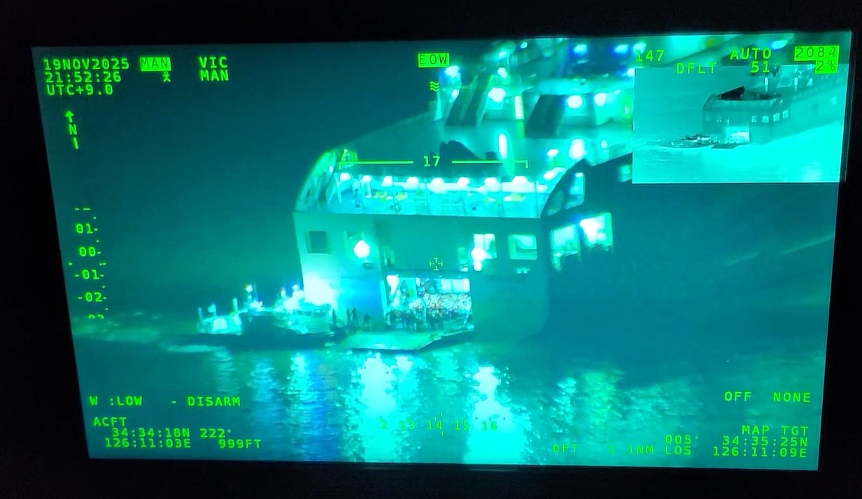 항공 열화상카메라로 본 사고 현장의 모습. 2025.11.19 [목포해경 제공. 연합]