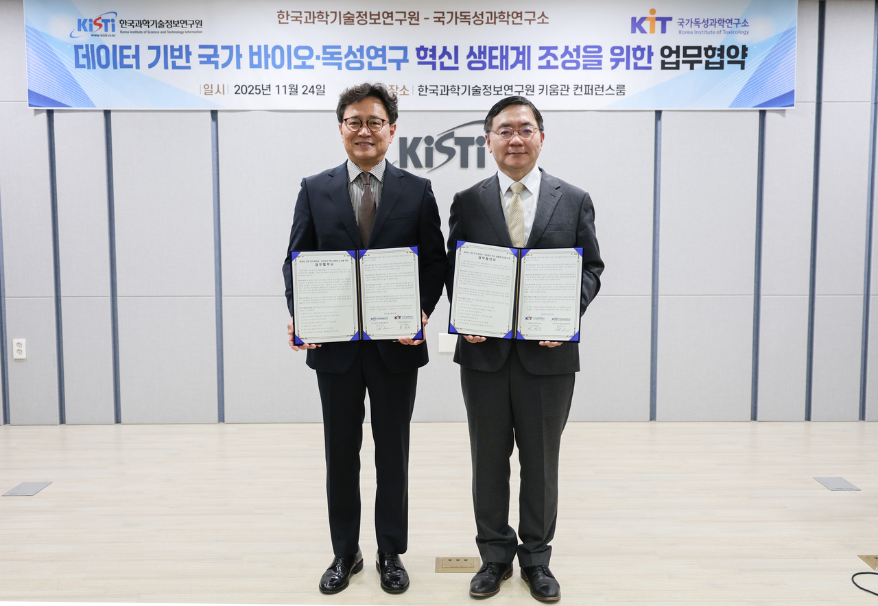 이식 KISTI 원장은 “KISTI의 AI·HPC·데이터 역량이 KIT의 독성연구 전문성과 결합되면 국가 독성연구 생태계의 혁신적 전환을 이끌 수 있을 것”이라며 “KISTI는 줄기세포 치료제 연구 플랫폼 구축을 통해 국가 바이오헬스 연구 경쟁력 강화에 적극 기여하겠다”고 밝혔다.