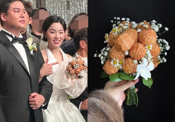 [헤럴드경제=최원혁 기자] 배우 이장우(39)와 조혜원(31)의 결혼식에 ‘호두과자 부케’와 이색 답례품이 온라인에서 화제다.
