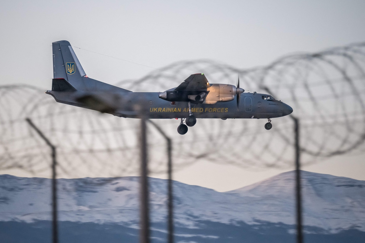 | 22일(현지시간) 우크라이나 군용기가 스위스 제네바 공항에 착륙하는 모습. [AFP] |