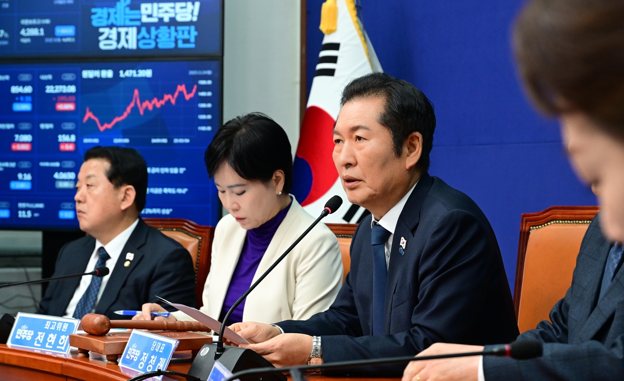 | 정청래 더불어민주당 대표가 24일 오전 서울 여의도 국회에서 열린 최고위원회의에 참석해 모두발언하고 있다. 이상섭 기자 |