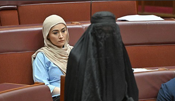 25일(현지시간) 로이터·AFP 통신 등에 따르면 호주 극우 정당 ‘원 네이션’ 소속 폴린 핸슨 상원의원은 공공장소에서 얼굴을 완전히 가리는 이슬람 복장을 착용하지 못하게 하는 법안을 전날 의회에 제출하려고 했다. 그러나 다른 상원의원들이 법안 제출을 막자 몇 분 뒤 부르카를 뒤집어썼다.