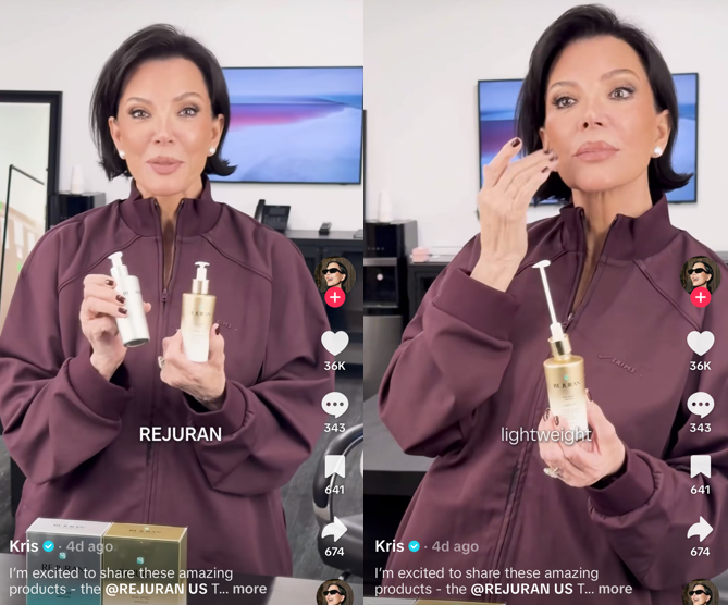 | 세계적인 셀럽 킴 카다시안의 모친 크리스 제너가 리쥬란 코스메틱 제품을 사용하는 영상을 자신의 SNS에 게재했다. 해당 영상은 조회수 100만회를 돌파했다. [크리스 제너 SNS 갈무리[ |