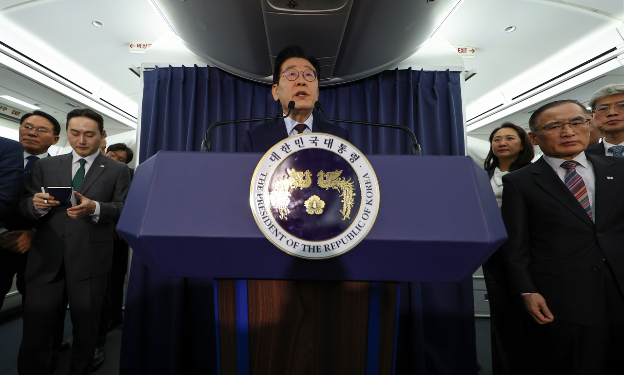 이 대통령은 24일(현지시간) 남아공 요하네스버그에서 튀르키예 앙카라로 가는 공군1호기에서 순방 기내간담회를 갖고 이같이 밝혔다. 기내간담회는 이륙 후 30분 만에 시작됐고, 1시간 동안 진행됐다.