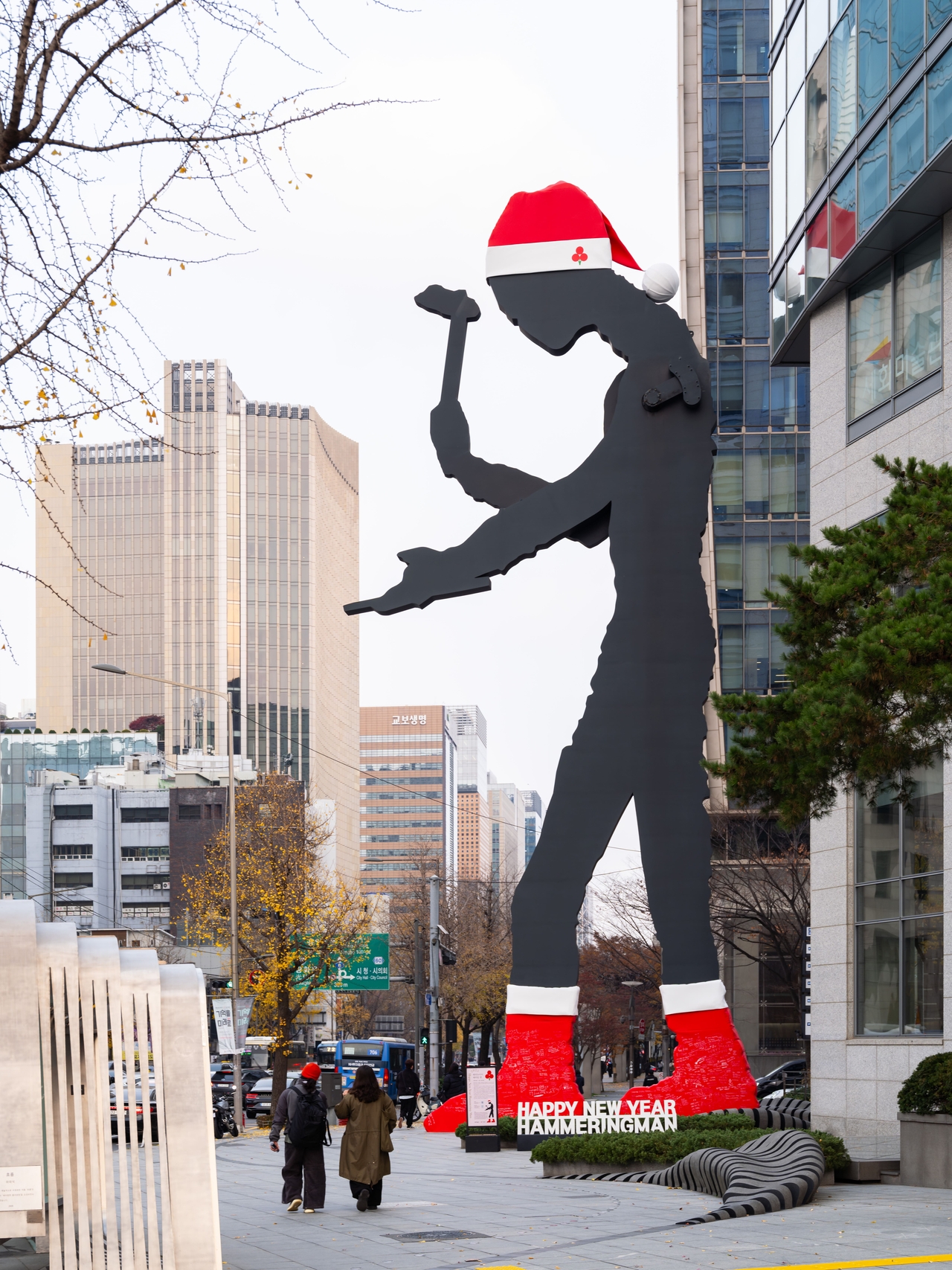 해머링맨은 광화문 흥국생명빌딩 외벽에 설치된 높이 22m의 대형 조형물로, 미국 조각가 조나단 보로프스키가 제작한 연작 작품이다. 뉴욕, 프랑크푸르트, 나고야 등 전 세계 11개 도시에도 같은 연작이 설치돼 있으며 광화문 작품이 그중 가장 큰 규모다.