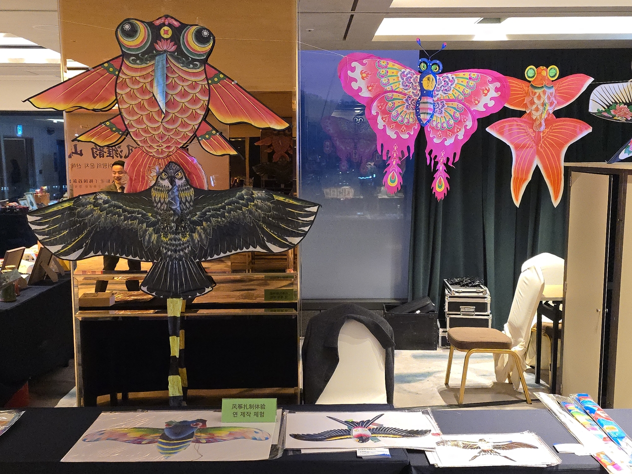 | 웨이팡시는 세계적인 연 날리기 도시이다. 세계 연 날리기 대회가 매년 열린다. 방한 설명회장인 앰배서더 풀판 호텔에 내걸린 웨이팡시 연들. |