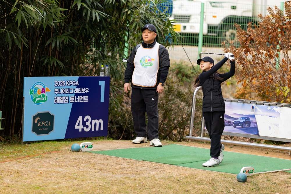 | 2025 KPGA 주니어리그 ‘제10회 레인보우 레벨업 토너먼트’에서 유소년 선수가 샷 하고 있다. |