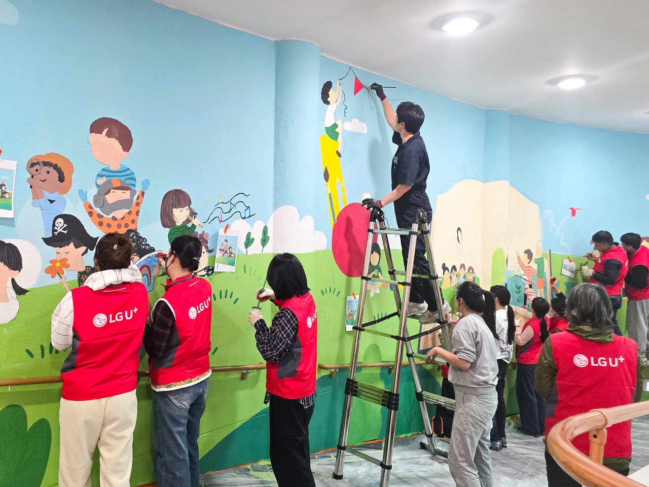 이와 함께 LG유플러스는 시각장애 학생들을 위한 벽화 그리기 봉사활동도 진행했다고 밝혔다. 지난 25일 충주성모학교를 찾은 임직원 20여명은 학교 담장에 약 46.15㎡ 크기의 벽화를 그렸다. 밝은 톤으로 그려진 벽화로, 저시력 학생들이 안정적인 분위기에서 학습하도록 도울 것이란 게 LG유플러스 설명이다.