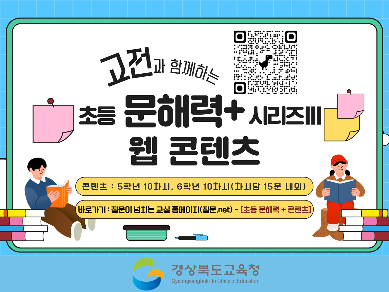 이번에 보급하는 ‘고전과 함께하는 문해력+’는 5~6학년용으로, 친숙하지만 실제로 읽어보기 어려웠던 고전 작품을 읽기 퀴즈, 어휘 학습, 관련 고사성어 소개 등 다양한 콘텐츠로 학생들의 문해력 신장을 돕는다.