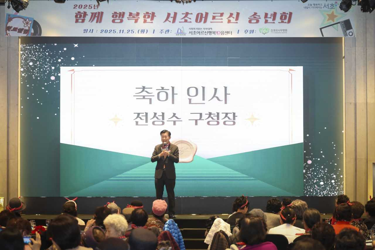 전성수 서초구청장은 “이번 송년회는 어르신들과 함께 한 해를 마무리한 뜻깊은 시간이었다”며 “앞으로도 어르신들의 겨울을 따뜻하게 만드는 복지환경 조성에 최선을 다하겠다”고 말했다.