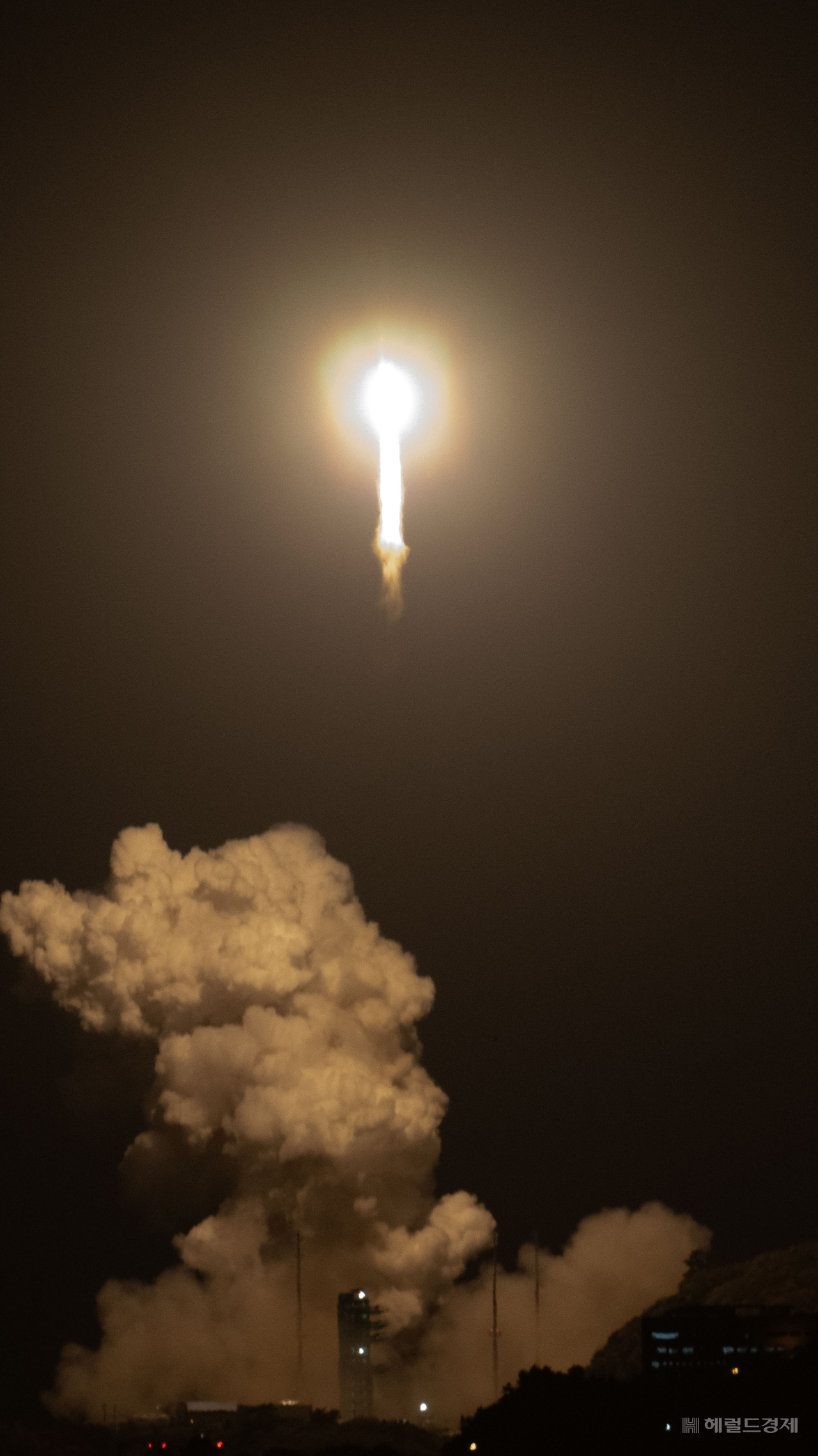 [헤럴드pic] 우주 향하는 누리호 글꼴 선택 본문 텍스트 크게본문 텍스트 작게 인쇄 [헤럴드경제(고흥)=임세준 기자] 한국형발사체 누리호가 27일 새벽 전남 고흥군 나로우주센터에서 발사되고 있다. 우주항공청에 따르면 누리호는 이날 오전 1시 13분 발사돼 1단과 2단, 페어링 분리 등을 수행하고, 탑재했던 위성 13기를 모두 예정된 궤도에 방출했다.