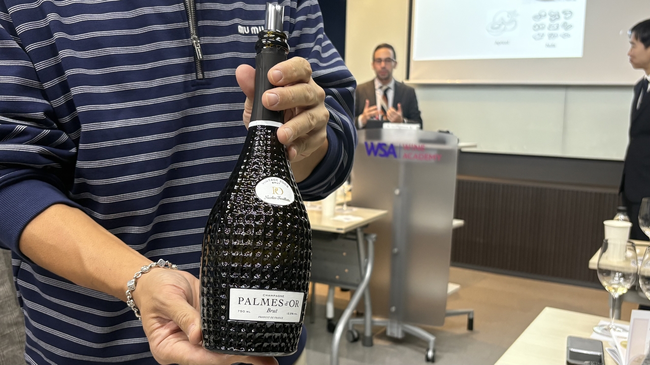 니콜라스 푸이야트의 ‘팔메도르 2009 브뤼’. 2009년 생산된 포도로만 만들어졌으며 제네디 케네디의 흑진주 목걸이에 영감을 받은 디자인으로 유명하다. 신현주 기자