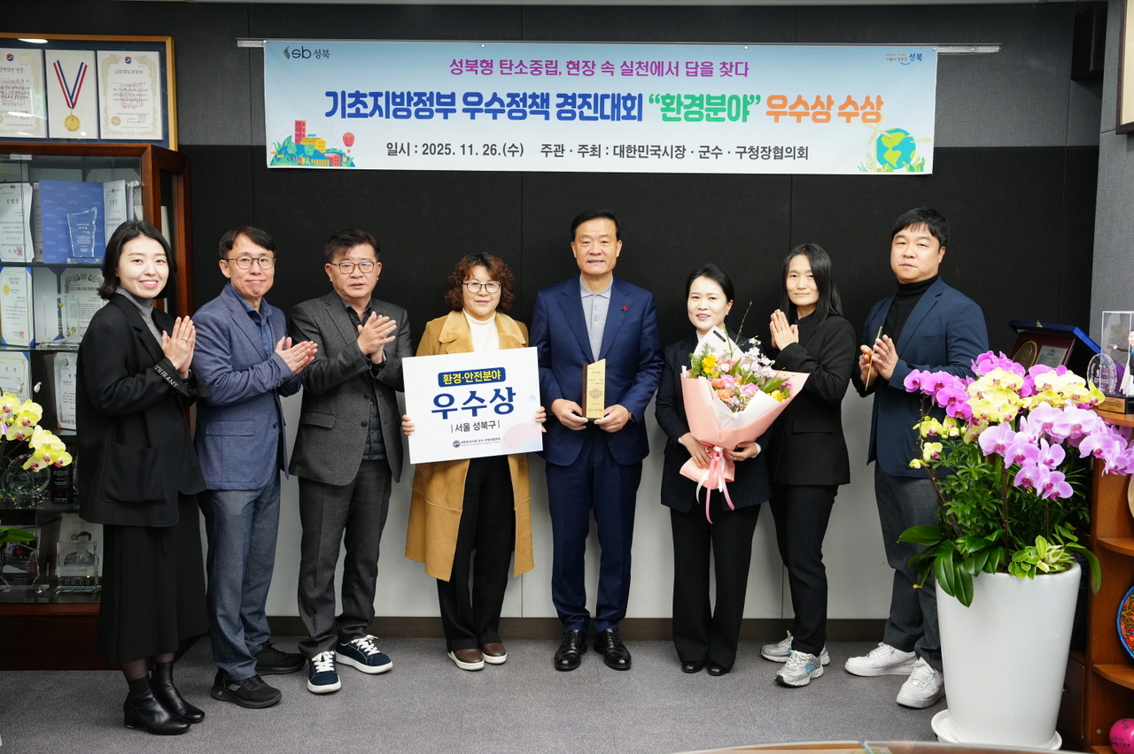[헤럴드경제=박종일 선임기자]서울 성북구(구청장 이승로)가 지난 26일 대한민국시장군수구청장협의회가 주최·주관한 ‘2025 기초지방정부 우수정책 경진대회’에서 환경 분야 우수상을 수상했다.