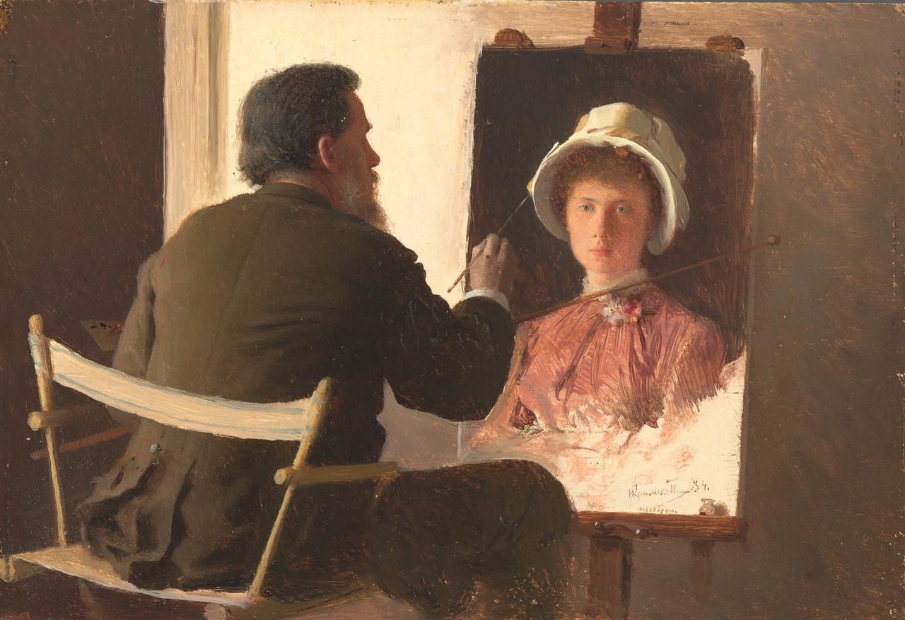 | 이반 크람스코이, 그의 딸 초상화를 그리는 화가(크람스코이), 1884, 보드에 유채, 16.5x24cm, 트레티야코프 미술관 |