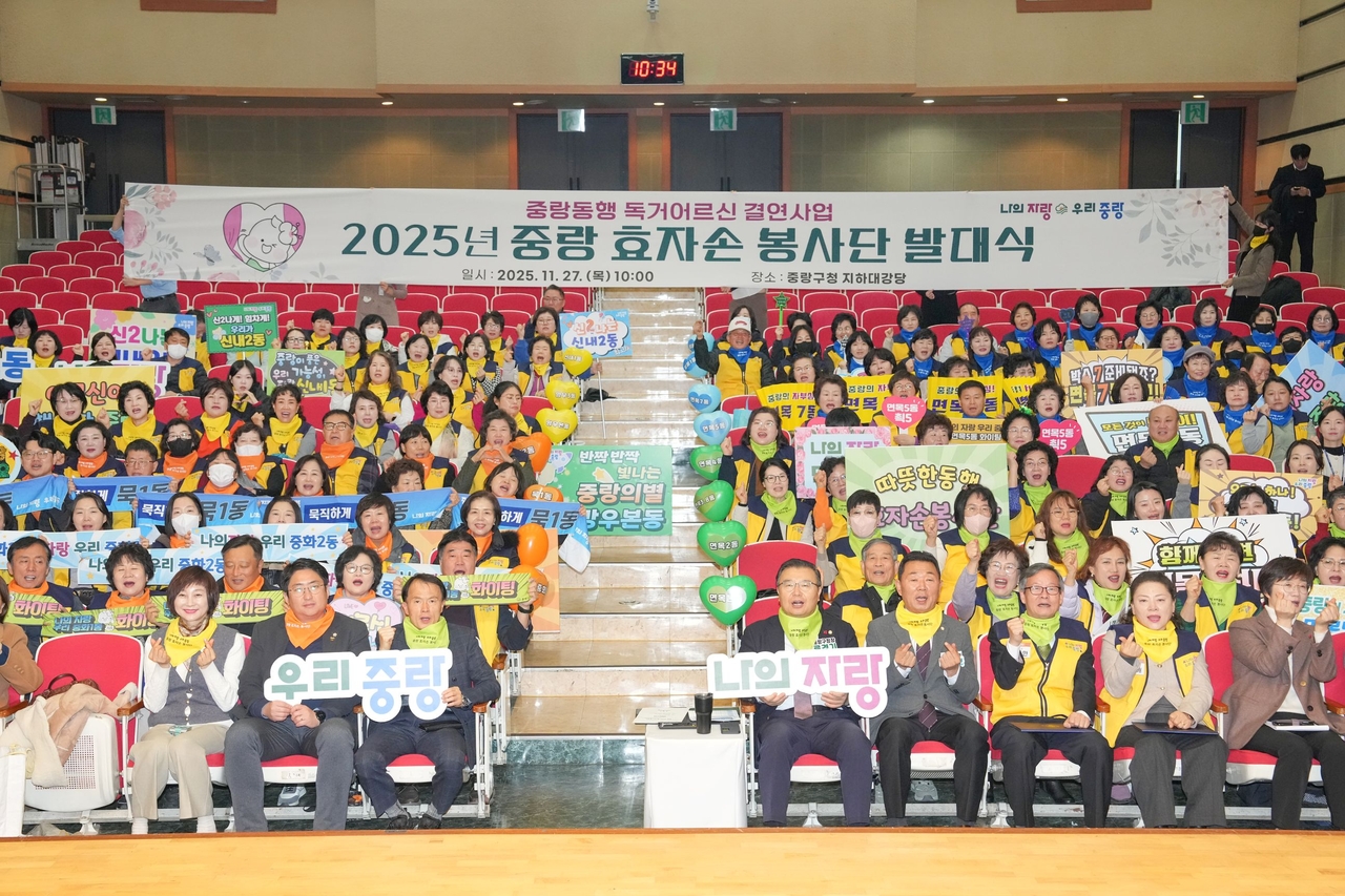 중랑구(구청장 류경기)는 지난 27일 구청 지하대강당에서 ‘중랑 효자손봉사단’ 발대식을 개최하며 지역의 독거어르신을 위한 촘촘한 돌봄망을 확대했다.