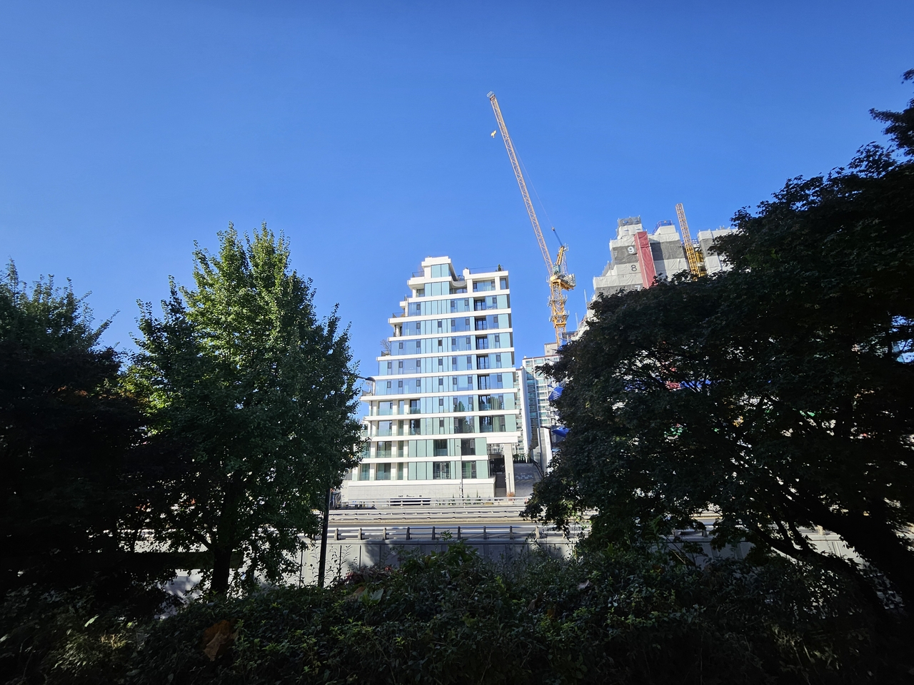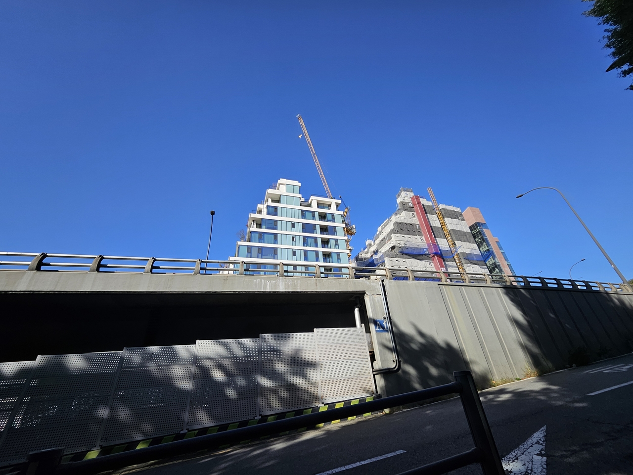 | 아페르한강 맞은편 공원에서 바라본 모습. 언덕 위에 위치한 아페르한강은 전면을 보기 어렵다. 우측 옆에는 내년 입주를 앞둔 아페르파크의 모습 [서정은 기자] |