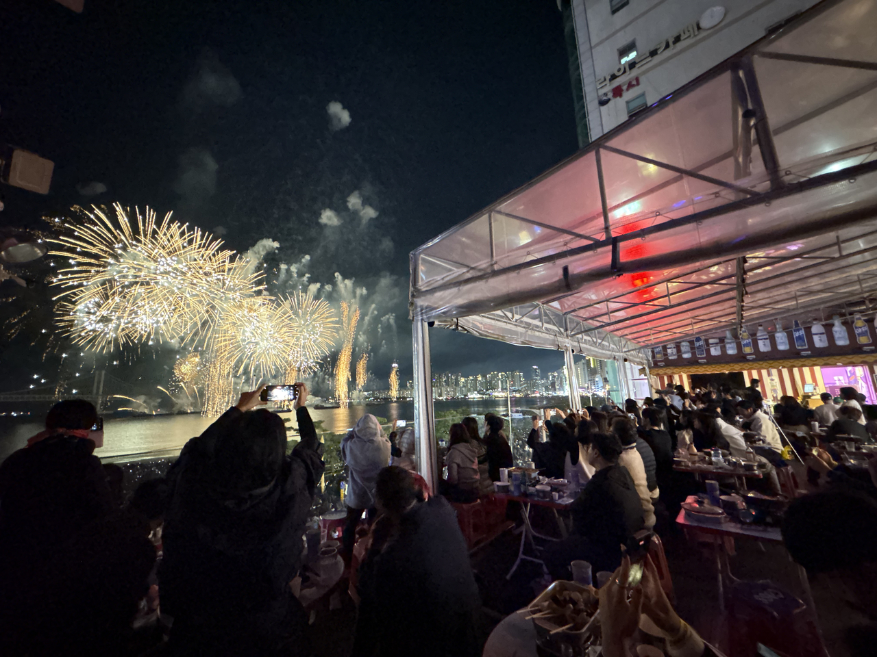 | 삼진어묵이 겨울 시즌을 맞아 ‘삼진포차 시즌4’를 2월 28일까지 운영한다고 밝혔다. 사진은 시민들이 ‘삼진포차’에서 ‘2025 부산불꽃축제’를 관람하고 있는 모습 [삼진어묵 제공] |