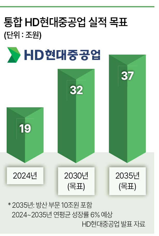 앞서 HD현대중공업은 미국계 사모펀드 서버러스캐피털, 산업은행과 50억달러 규모의 투자펀드를 조성하기로 했으며 미국 최대 방산 조선사 헌팅턴 잉걸스와는 차세대 군수지원함 건조 사업 협력에 나섰다. 정기선 HD현대 회장은 “내년부터 미국 조선소 인수·업그레이드, 첨단 선박 개발·건조, 조선 기자재 공급망 확충 등 사업을 추진할 계획“이라고 언급한 바 있다. 오는 2035년 특수목적선을 포함한 방산 부문의 매출 목표는 10조원을 제시했다.