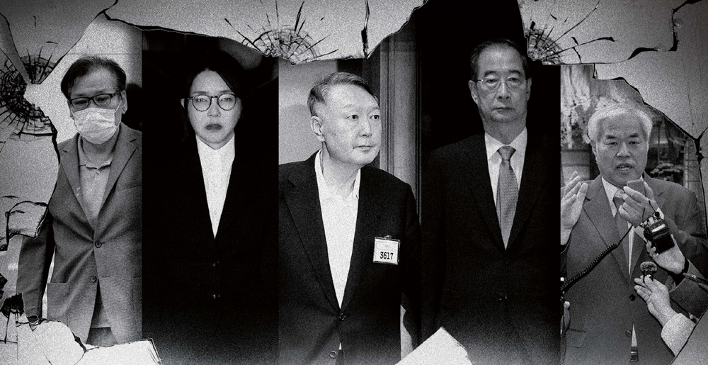 분노와 적의로 점철된 망상의 권력자, 공적 지위를 탐했던 사적 욕망, 영혼없는 법·행정 기술자들, 주술이나 예지같은 삿된 재주로 홀려 이름과 이권을 팔았던 브로커, 광신적 이념과 교리를 돈벌이로 삼은 극우세력이 바로 그날 계엄의 밤에 대한민국을 파국으로 몰고가려던 ‘5개의 광기’였다. 이들 중 어느 하나라도 없었다면, 이들간의 접합과 연대가 불가능했더라면, 2024년 12월 3일 밤 상연된 초현실적 희비극은 아마도, 권력자의 취중 망상이나 시나리오 단계에서 멈췄을 지도 모를 일이다. 수사와 재판이 진행될수록 광기에 찬 5개의 얼굴들과 이들간의 얽히고 설킨 커넥션이 드러나고 있다.